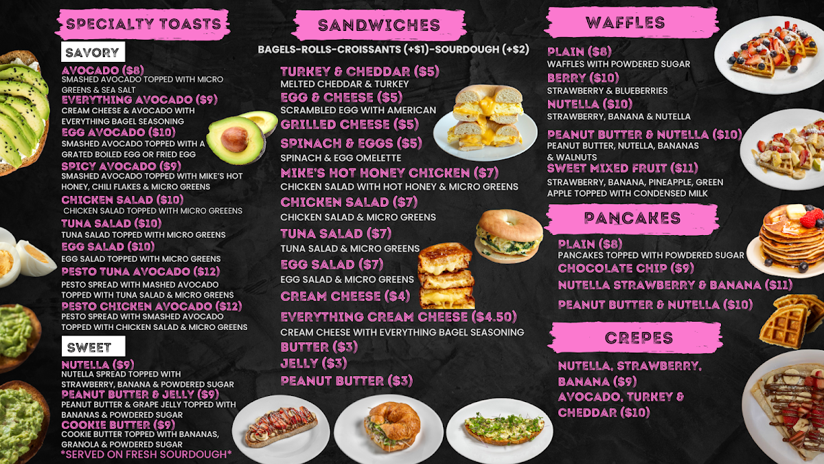 Now, let’s talk about the food! Passion Cafe’s menu is a sumptuous showcase of what breakfast and brunch should be. The standout items include their Specialty Waffles, which range from the simple yet satisfying Plain Waffle dusted with powdered sugar for only $9.00, to the indulgent Peanut Butter & Nutella Waffle, featuring a delightful combination of peanut butter, Nutella, banana, and walnuts—all for just $11.00. Perfect for those who crave a sweet treat to kick off their day or to share while lounging with friends.